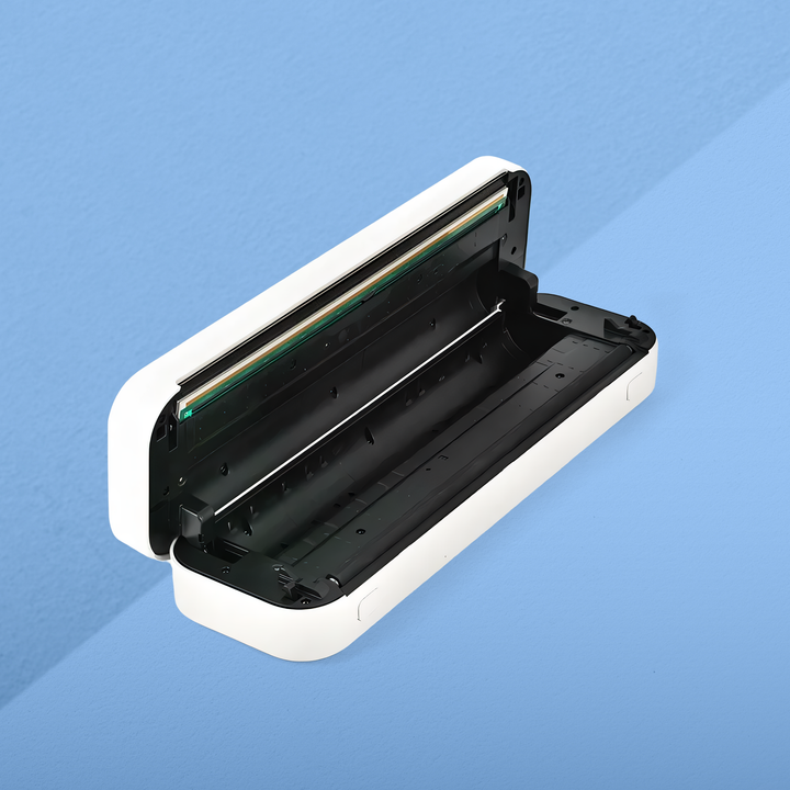 Dites adieu aux cartouches et aux câbles. Grâce à la technologie thermique, l'imprimante MYIMPRIMO imprime instantanément en noir et blanc avec du papier thermique. Une solution économique, propre et mobile.